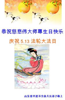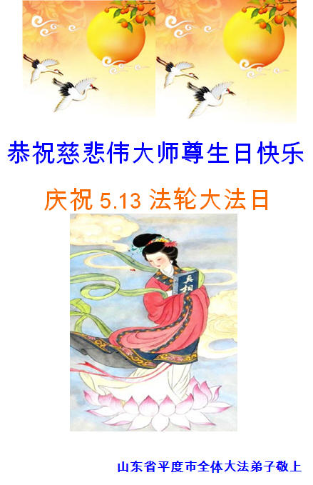 山东省青岛市平度市全体大法弟子恭祝慈悲伟大师尊生日快乐!庆祝5.13法轮大法日!