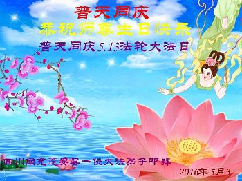 普天同庆5.13世界法轮大法日!恭祝师尊生日快乐! 四川南充蓬安县一名大法弟子恭贺法轮大法日!