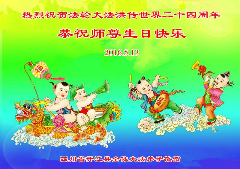 四川省达州市开江县全体大法弟子庆贺大法洪传世界二十四周年!