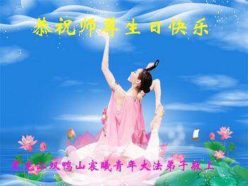 师尊您好!恭祝师父生日快乐!同贺大法洪传二十四周年! 在师父生日来临之际弟子送上对师尊的感恩。感谢师尊在地狱中把我捞起洗净,弟子对师尊的感恩弟子无以言表。唯有在以后的时间里做好三件事,更加严格的要求自己。向内找、多救人。兑现史前誓约。 黑龙江省双鸭山市大法弟子恭贺世界法轮大法日!