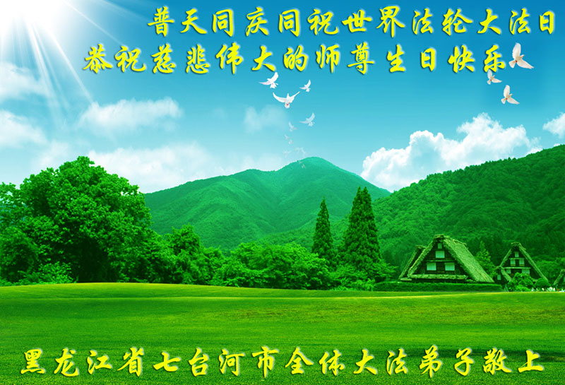 黑龙江省七台河市全体大法弟子恭祝师尊生日快乐!普天同庆世界法轮大法日!