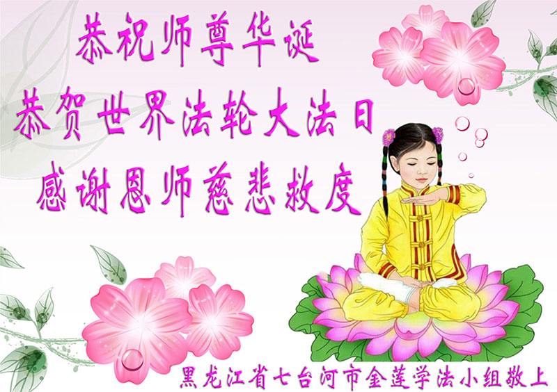 黑龙江省七台河市金莲学法小组大法弟子恭贺师尊华诞!恭贺世界法轮大法日!