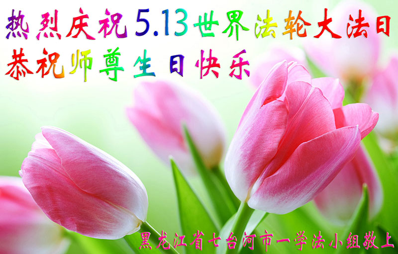 黑龙江省七台河市一学法小组大法弟子恭祝师尊生日快乐!热烈庆祝世界法轮大法日!