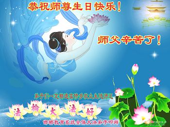 世界法轮大法日 弟子遥拜感恩篇 仰望师尊泪沾巾 弟子修炼师操心 生活琐事师呵护 命危巨难师承担 只因弟子凡心重 错加错徘徊不前 愧对师尊慈悲唤 师尊洪恩大过天 不记弟子过往过 看护备至如初前 感恩话语诉不完 用心实修兑誓愿 遵照师嘱多救人 助师正法随师还 黑龙江省教育系统全体大法弟子恭祝慈悲伟大的师尊生日快乐!普天同庆世界法轮大法日!