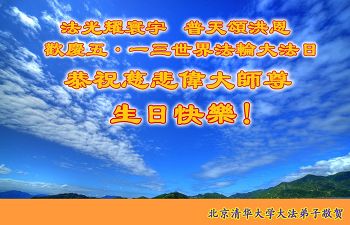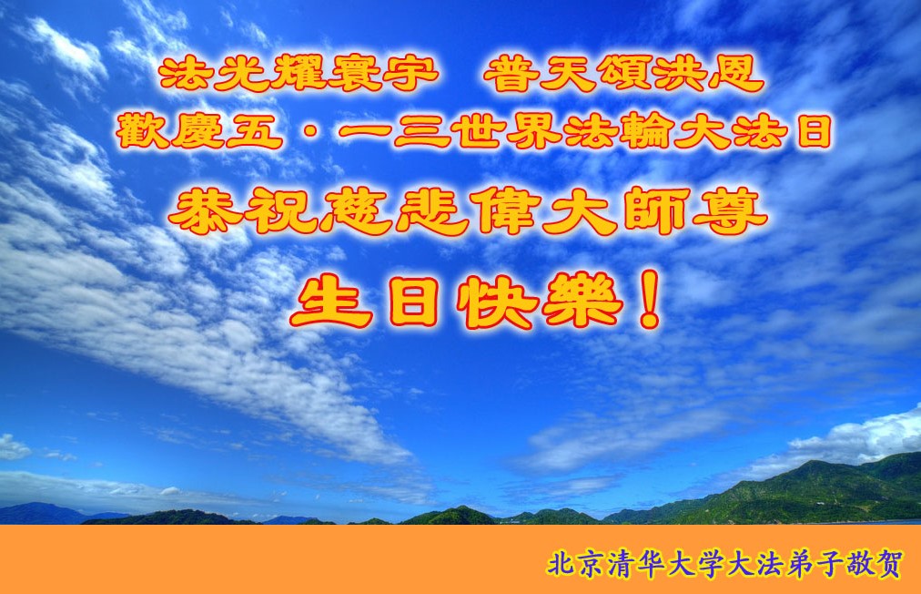 北京清华大学大法弟子恭祝慈悲伟大师尊生日快乐!