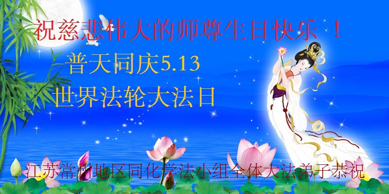 江苏省常州地区大法弟子恭祝师尊生日快乐!普天同庆世界法轮大法日!