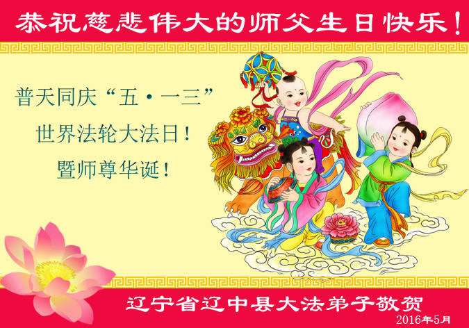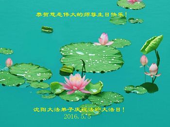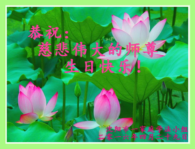 【明慧网二零一六年五月九日】 辽宁沈阳一家庭学法小组恭祝慈悲伟大的师尊生日快乐!