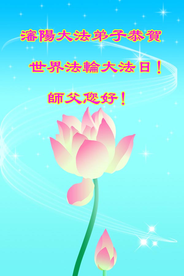 在这普天同庆的日子里,弟子叩拜恩师,感谢师尊慈悲苦度,弟子谨记 师尊的教诲:多学法、学好法,遇事向内找,修心性,做好三件事。修 炼如初,圆满必成。弟子叩拜师尊!2016.5.1 辽宁省沈阳一学法小组大法弟子恭贺世界法轮大法日