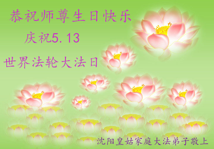 庆祝法轮大法日! 辽宁省沈阳皇姑家庭大法弟子恭祝师尊生日快乐!庆祝世界法轮大法日!