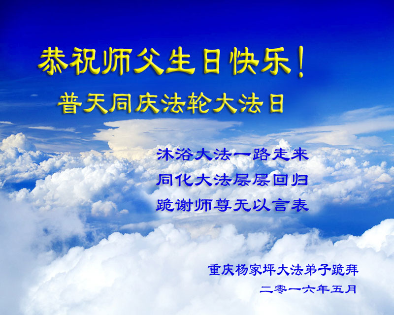 重庆渝北区一大法弟子恭祝师父生日快乐!恭贺5.13世界法轮大法日!