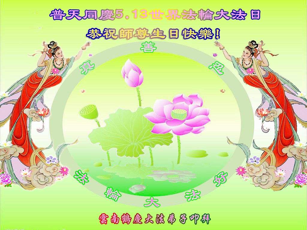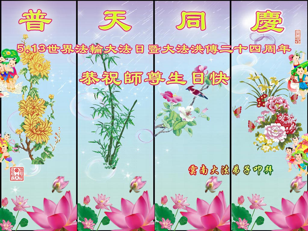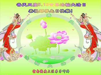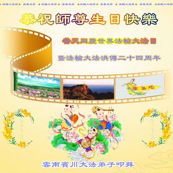 云南昆明一大法弟子恭贺师尊华诞暨世界法轮大法日!