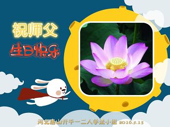 在有限的时间里,我们一定听师父的话,做好三件事,急救人,兑现我们来时的史前誓约! 河北省唐山市丰南区全体大法弟子恭祝师尊生日快乐!