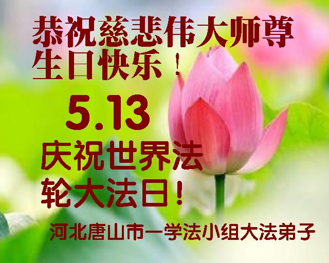 庆祝5.13世界法轮大法日 河北唐山路南区一学法小组全体大法弟子恭祝师尊生日快乐!