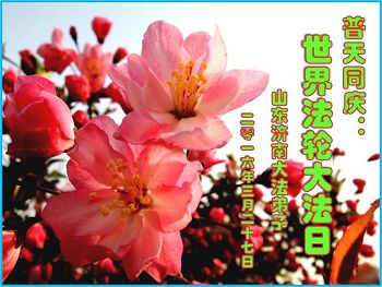 学法得法心自明 辗转轮回为此生 大法恩赐化春雨 滋润万物救众生 浊世金光大法徒 助师正法天地行 深入人心大法好 洪扬光大真善忍 待到众生得救日 普天同庆同歌颂 万语千言谢师恩 佛恩浩荡法永存 山东济南大法弟子普天同庆世界法轮大法日!