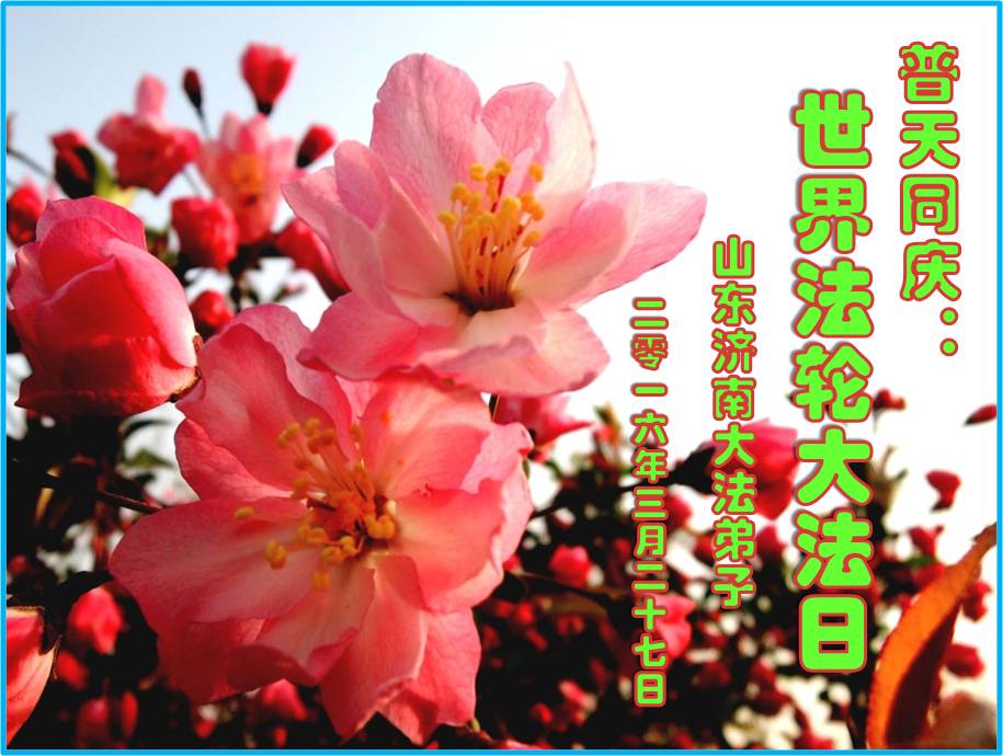 【明慧网二零一六年五月九日】 山东济南市中区学法小组大法弟子恭贺师尊华诞暨法轮大法日!