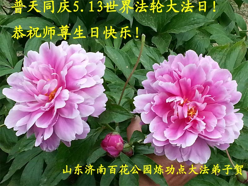 山东省济南市大法弟子恭祝慈悲伟大的师父生日快乐!祝贺5.13世界法轮大法日!