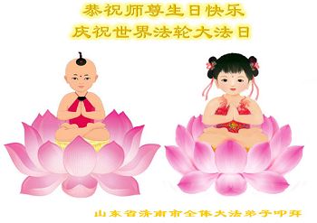 山东济南大法弟子恭祝师尊生日快乐!普天同庆世界法轮大法日!