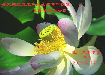 在这普天同庆的日子里,厦门大法弟子无限感激慈悲伟大的师尊慈悲救度、谆谆教诲,使我们从一个满身罪孽的生命成长为助师正法的大法弟子。信师信法,弟子信心十足!弟子会更加精進,努力做好,惟愿师尊笑! 福建省福州市鼓楼区一学法小组全体大法弟子恭祝师尊华诞暨世界法轮大法日!