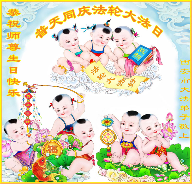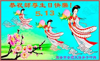 陕西省西安市大法弟子恭贺师父华诞暨法轮大法日!