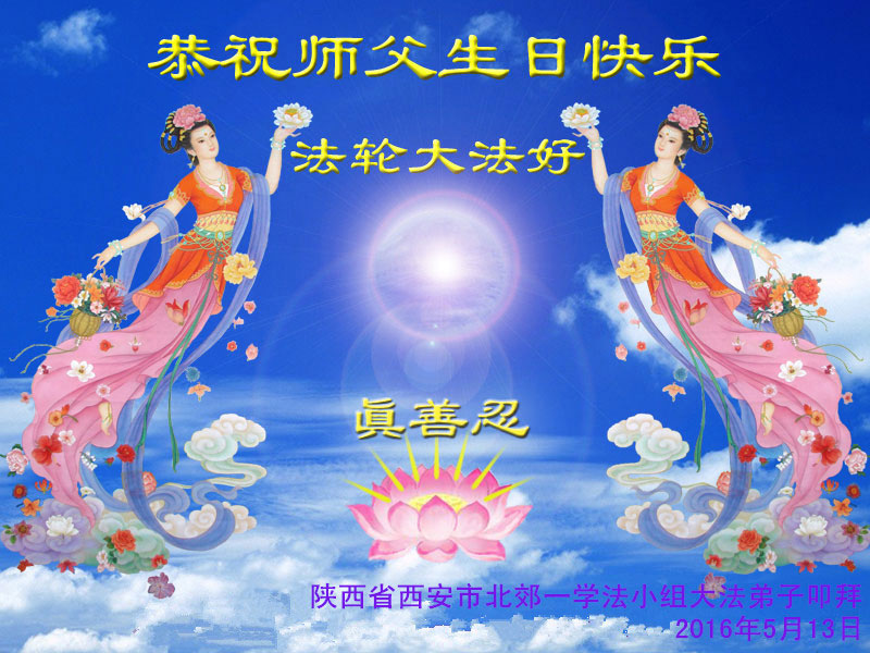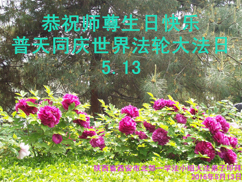 【明慧网二零一六年五月九日】 陕西省西安卫星测控中心全体大法弟子恭祝师父生日快乐!