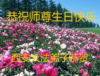西安市一学法小组的大法弟子敬祝师尊生日快乐!叩拜慈悲伟大的师尊!师尊您辛苦了!弟子们想念您!请师尊放心,弟子们一定永远追随您,努力做好三件事,努力多救人,兑现正法时期大法弟子的神圣使命。 陕西省西安大法弟子恭祝师尊生日快乐!庆祝世界法轮大法日!
