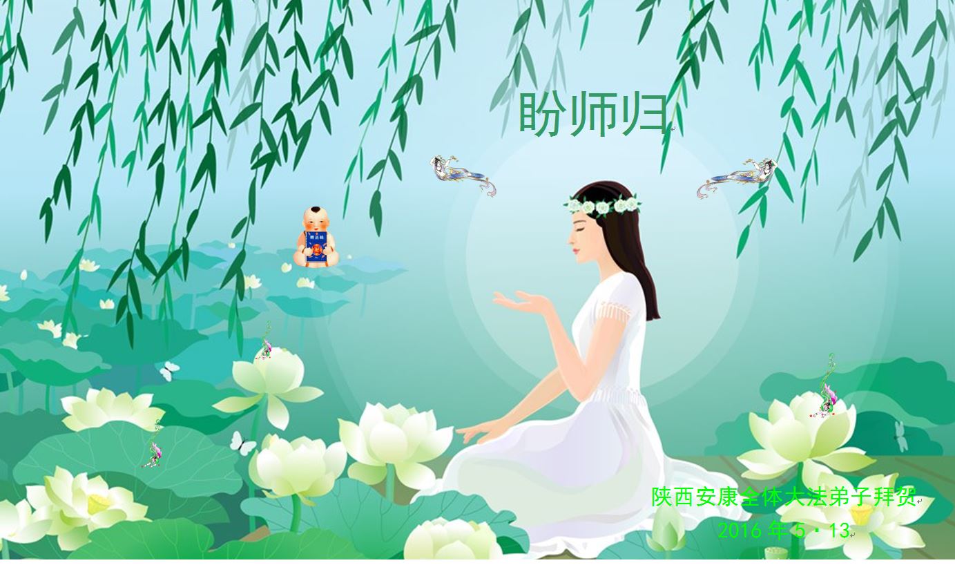 师尊您好!师父辛苦了! 借世界法轮大法日这个盛会,向师父问声好!祝您生日快乐!谢谢师父佛恩浩荡,把弟子从道德沦丧边缘拉回,死亡中重获新生,是您一次又一次给我这个不争气弟子机会,您的恩德弟子无以言表,只有珍惜师父用巨大承受给我们延续的有限时间,实修自己,做好三件事,多救众生,抓住师父的手,跟师父回家! 陕西安康大法弟子敬上 2016年5月13日 陕西安康一大法弟子全家恭祝师父生日快乐!