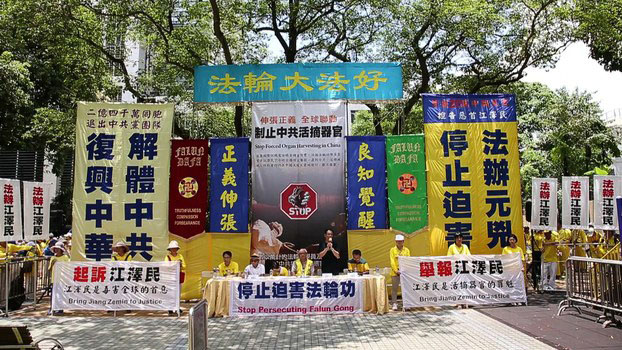 据自由亚洲电台七月十八日报道,七月十七日星期天中午,游行人士聚集在英皇道游乐场,举行了反迫害十七周年集会。集会由香港法轮功团体组织,有来自香港、台湾和东南亚等地的近千名法轮功成员参加。 一九九九年七月,中共政权开始对法轮功进行全国性的镇压,至今已有十七年的时间。在香港一国两制的安排下,法轮功仍可以在香港公开活动。不过香港法轮功学员表示,最近几年以来,香港特区政府对法轮功的打压日渐加强。 香港法轮佛学会发言人简鸿章,批评特首梁振英跟随中共前党魁江泽民打压法轮功。 香港法轮佛学会发言人简鸿章说:“作为江泽民迫害法轮功的走狗,梁振英策动黑帮乱港,发动青关会街头暴力与食环署非法行动侵扰法轮功真相点,要求梁振英下台、法办梁振英,已经成为大多数港人的共同愿望。” 多位香港民主派人士到场声援。保卫香港自由联盟发言人韩连山说:“香港的所谓一国两制、高度自治已经逐渐变色,变成了赤色。所以各位市民,各位朋友,我们今天知道法轮功受迫害的情况,我都不需要多讲了,我只想讲一样,就是香港政府的官员梁振英和他那班所谓的领导班子,请你们留意,你们千万不要再打压香港的法轮功。” 集会者认为,中共镇压法轮功的主要责任人是前国家主席江泽民,他们要求应追究他的责任,并将之绳之以法。 集会结束后,游行队伍下午二时多从北角出发前往终点中联办,吸引许多的市民及游客观看。队伍下午大约六时抵达终点中联办,法轮功学员代表并在中联办前宣读抗议信,呼吁中共停止镇压法轮功。