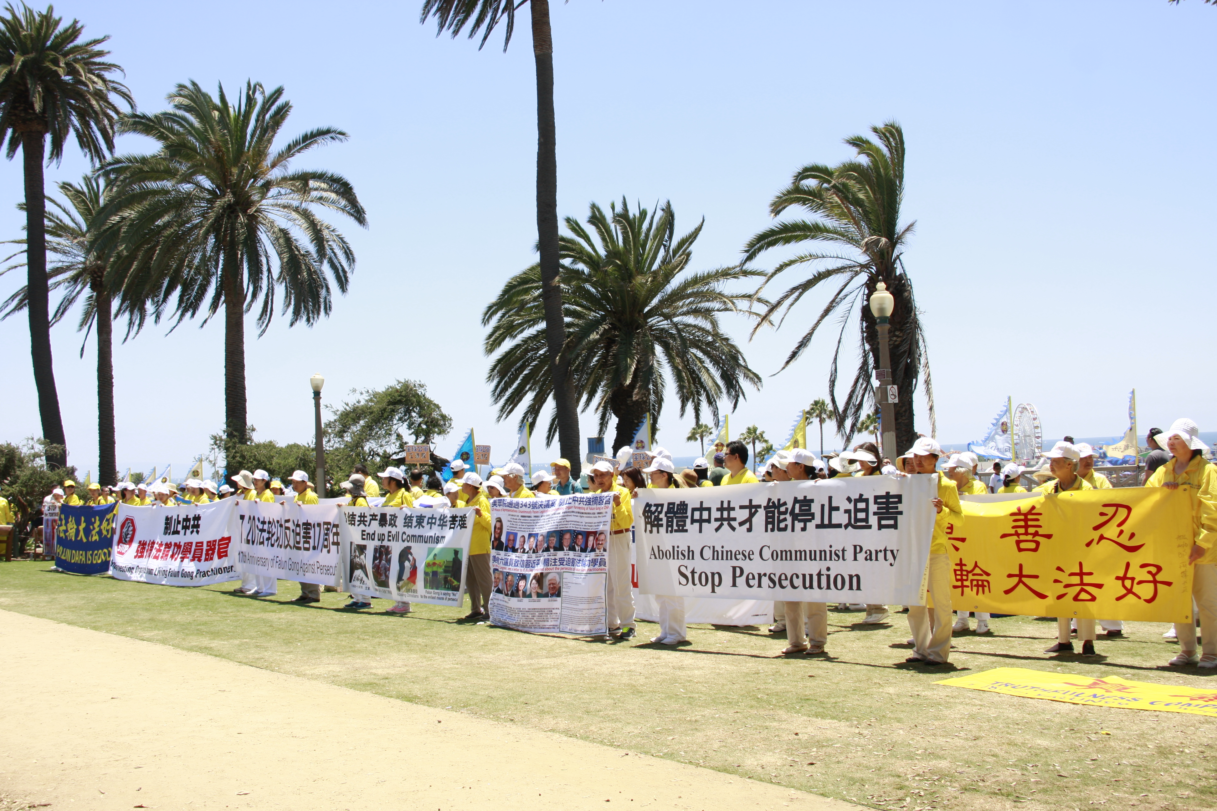 【明慧网二零一六年七月十九日】一九九九年七月二十日,中共江泽民集团对法轮功公开发起大规模逮捕迫害行动,开始了长达十七年的迫害,上百万人被非法拘禁,无数家庭被拆散。二零一六年七月十七日,两百多位洛杉矶法轮功学员在南加旅游胜地圣莫妮卡码头集会,纪念反迫害十七年,呼吁全社会起来制止迫害。 图1-3:近两百名洛杉矶法轮功学员在洛杉矶著名景点圣莫尼卡举办720“反迫害”十七周年集会,呼吁制止迫害,将迫害元凶江泽民绳之以法。 |