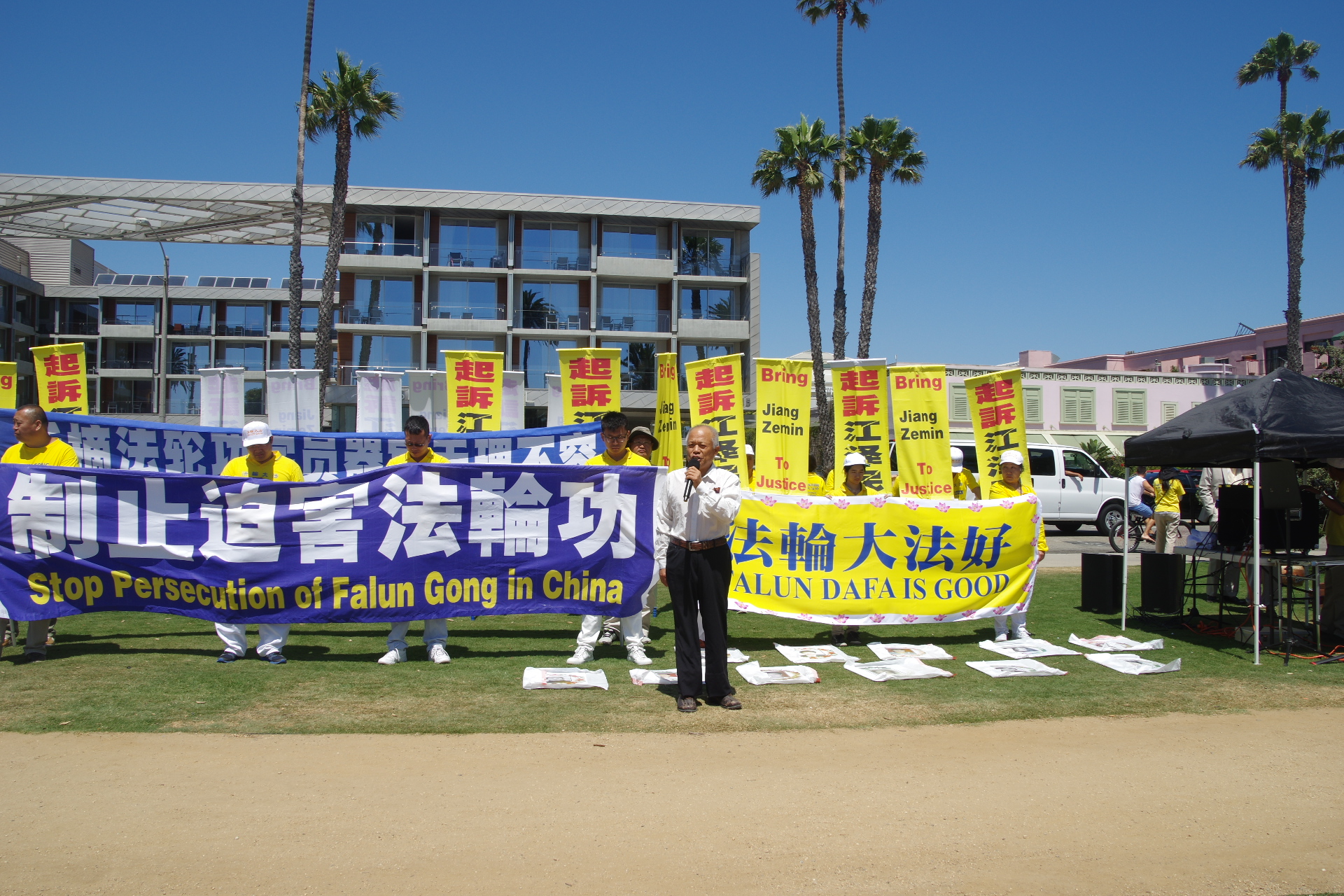 洛杉矶法轮功团体的发言人吴英年教授表示,在过去十七年里,法轮功学员一直致力于向民众揭示中共的邪恶、澄清中共对法轮功的抹黑宣传,得到越来越多的支持。最近一个月美国国会通过了谴责中共活摘法轮功和其他良心犯器官的343决议,欧洲议会也通过类似决议,显示迫害越来越难以为继。江泽民及其帮凶薄熙来、周永康等,正在遭到恶报,表面上是因贪腐的原因受到惩处,实际是因为迫害法轮功而遭到报应,希望参与迫害的人听一听法轮功修炼者的劝善,不要再害人害己,要改过迁善,为自己留下一个未来。 另外,他指出中共动不动就说别人是“反华势力”,实际上它一直在迫害中国老百姓,与民为敌,割让国土,它才是真正的反华势力。而法轮功学员的反迫害不止是维护自己的权利也是维护所有中国人的权利。 吴英年还说,反迫害不是参与政治。中共迫害法轮功,散布谎言诋毁法轮功,法轮功民众当然要澄清谎言,以和平理性的方式制止迫害。这和政治无关。法轮功对政权不感兴趣,海外包括台湾的法轮功学员从未介入过政党的分歧。 护士长:我经历了器官移植(供体)的每一关准备工序 当日在集会现场,多位从中国大陆来美,现居洛杉矶,在国内曾亲身经历过、或者有亲属遭到过非法关押的法轮功学员,出面作证在监狱里受到酷刑折磨。其中七十八岁的徐女士被全身电击瘫痪,至今不能行走说话;李先生左耳耳廓因遭受酷刑严重变形,听力受到损害;张先生脚趾大拇指骨折,整个关节变形。 护士长出身的高女士,二零零一年第四次被非法抓捕、关押在大连市看守所时差点成为活摘器官的对象。她回忆说自己曾经被验血、拍X光,经历了器官移植供体的每一关准备工序,只是因为她最后出现器官衰竭现象而没有被摘成。当时她被抓后没有报出姓名住址及工作单位,很可能因此被定为活摘的优先选择,因为死无对证。 良知基金会会长:中国器官移植模式就是活摘器官的证据 良知基金会会长陈师众说,在正常国家,需要接受器官移植的患者有等待名单,例如在美国要等几年,而中国只需要等两个星期。中国没有患者数据库,但是有另外一个数据库,即供体数据库,有成千上万法轮功学员在监狱劳教所里被验血。“这个(供体)数据库能干什么?当有一个美国人需要器官,倒过来查,哪个人匹配,就按需杀人,这是谋杀型器官移植。” 他说:“有人说活摘器官没有直接证据。中国器官移植的模式清楚摆在这里,不是没有证据,而是人们因为经济利益不愿正视。” 活摘法轮功学员器官最早于二零零六年三月被披露,至今已经有十年。陈师众说:“当法轮功学员器官被活摘,而世界还在寻找证据时,世界的良心也被活摘了。” 他呼吁除了343决议外,美国政府应该表彰法轮功学员,在过去十几年中为人类的良知所作的抗争。他说法轮功问题“不是宗教问题,是人类良知、人类根本价值观的问题。因为良知定义了人性最根本的东西,没有比迫害良知更邪恶的了。如果不支持,人类还是人类吗?人性还能存在吗?这种支持与承认其实是在捍卫自己。如果世界政治人物能认识到就有希望。” 各界支持法轮功学员反迫害  图13:中国社会民主党主持人刘因全在洛杉矶圣莫尼卡码头7.20反迫害集会上发言。 |