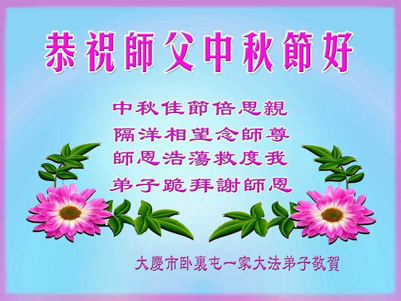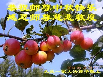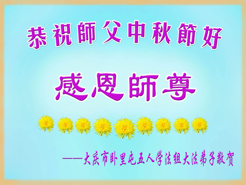 【明慧网二零一六年九月十二日】 黑龙江省大庆市卧里屯大法弟子祝师父中秋节好!