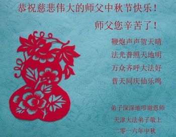 【明慧网二零一六年九月十二日】 天津大法弟子恭祝慈悲伟大的师尊中秋快乐!