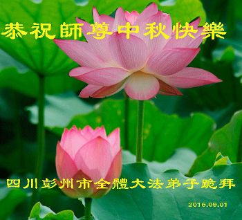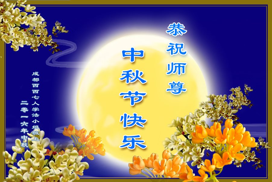 【明慧网二零一六年九月十二日】 四川省成都市都江堰市全体大法弟子及家人恭祝师父中秋快乐!