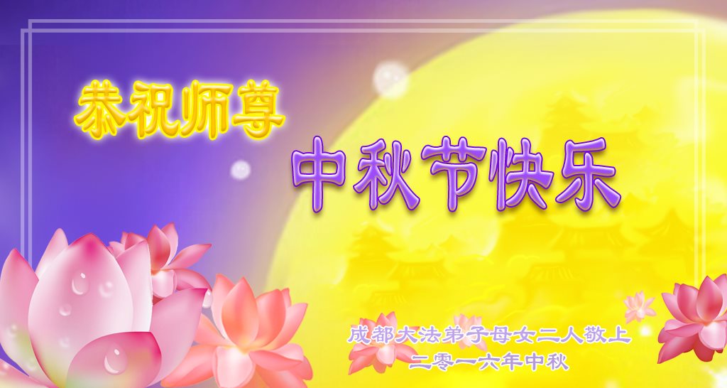四川省成都大法弟子母女二人祝师父中秋节快乐!