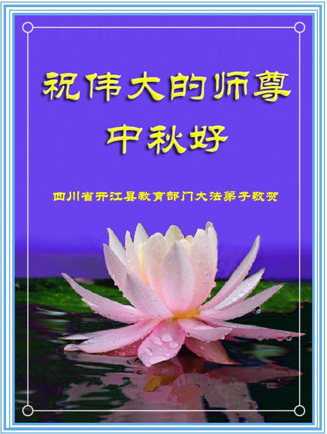 师父您辛苦了,您给予弟子们太多太多,弟子们无以回报,唯有精進修炼,多救众生,来回报师父的救度之恩。 四川省达州市开江县教育系统大法弟子恭祝师尊中秋快乐!