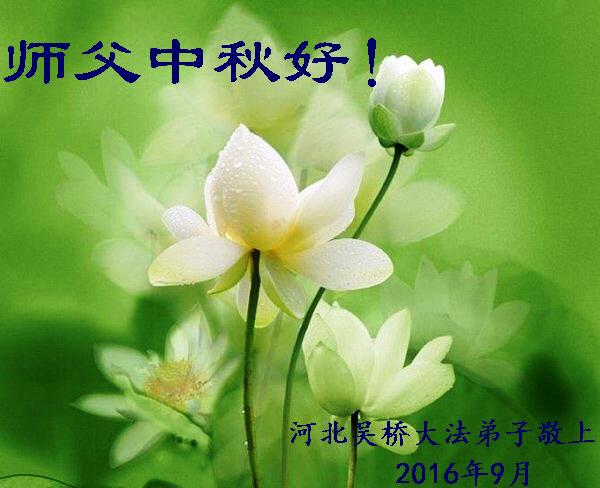 【明慧网二零一六年九月十二日】 河北平泉城西学法小组大法弟子恭祝师尊中秋节快乐!