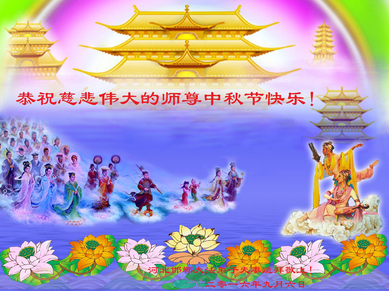 河北邯郸大法弟子夫妻恭祝慈悲伟大的师尊中秋节快乐!