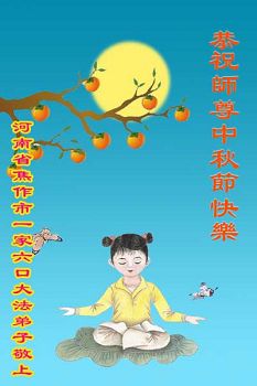 河南省焦作市一家三代六口大法弟子恭祝师尊中秋节快乐!