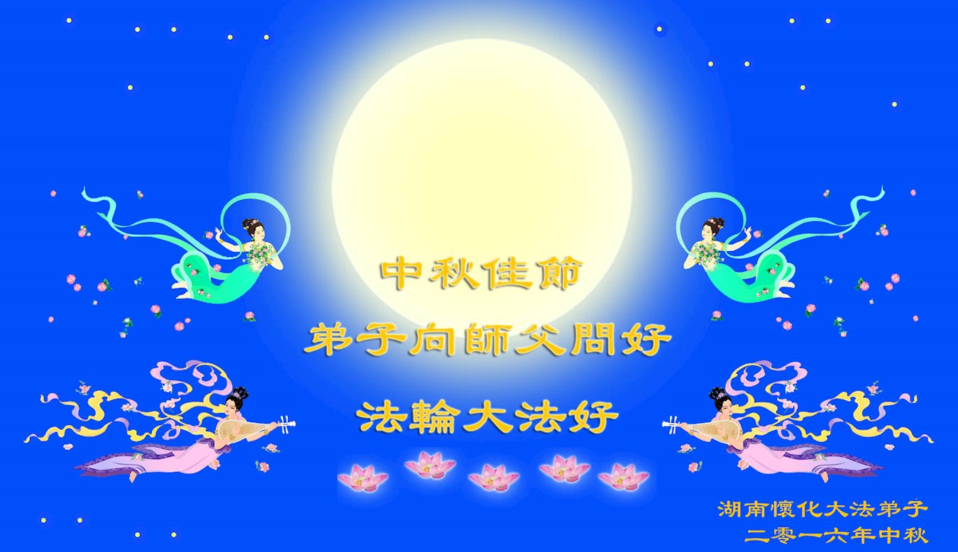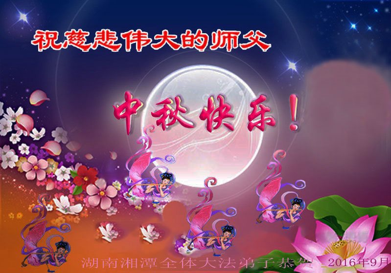 【明慧网二零一六年九月十二日】 湖南安化全体大法弟子恭祝师父中秋快乐!