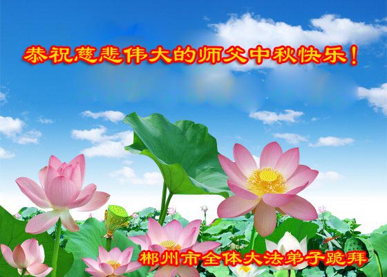 师尊您好!师父辛苦了! 一年一度的中秋佳节又到了,三百六十五天,师父为弟子与世人、与宇宙大穹的无量众生做出的巨大的付出,作为弟子,我们无法言表,弟子们只有尽自己一切所能,做好三件事,助师正法,多救人,跟上师父的正法進程,才能不辜负师父的慈悲苦度。 湖南省郴州市一学法小组全体大法弟子恭祝慈悲伟大的师父中秋节快乐!