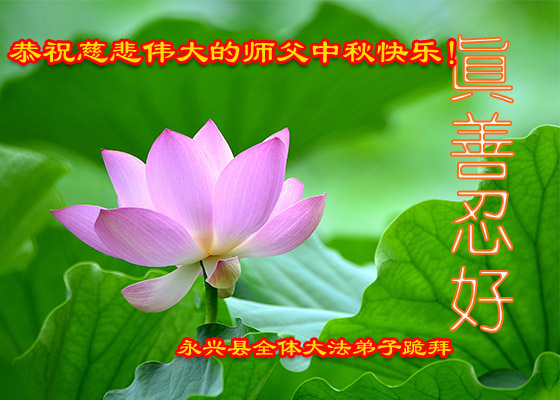 又一个中秋佳节来了,弟子们想念师父,感恩师父为弟子所做的一切!弟子只有做好三件事,助师正法,多救人,跟上师父的正法進程,才能不辜负师父的慈悲苦度。弟子只有精進实修,修心去执,达到大法弟子的标准,才能让师父放心。慈悲伟大的师父您辛苦了!合十! 湖南省郴州市永兴县全体大法弟子恭贺慈悲伟大的师父中秋快乐!