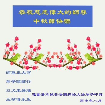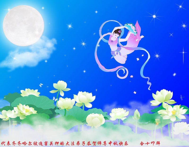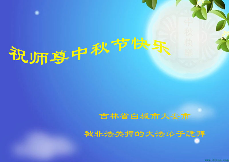 慈悲伟大的师尊您辛苦了!在这中秋佳节来临之际,弟子恭祝师尊中秋快乐!弟子感恩师尊的慈悲救度!请师尊放心,弟子一定会做好,坚定大法修炼,金刚不动,不给师父抹黑,时刻不忘大法弟子的使命,在各种环境中证实法,救众生,修好自己,圆满随师还!谢谢师尊慈悲呵护!四川省被非法关押的全体大法弟子跪拜! 山东省济南市寿光县被非法关押的大法弟子恭祝慈悲伟大的师尊中秋快乐!