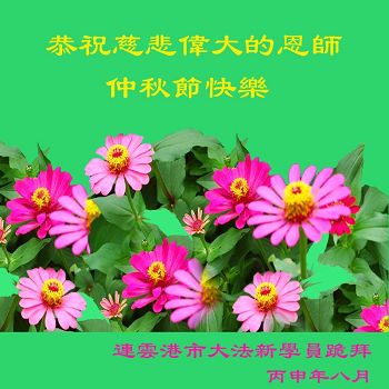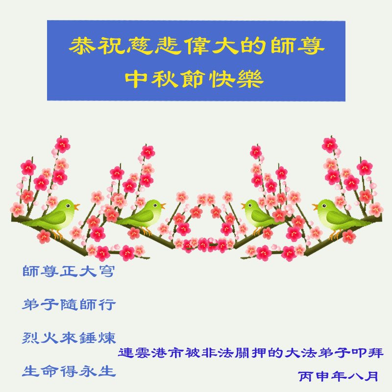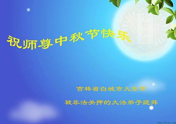 【明慧网二零一六年九月十二日】 江苏省连云港市被非法关押的大法弟子恭祝慈悲伟大的师尊中秋节快乐!