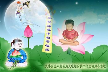 恭祝师尊中秋节快乐!感恩师尊这么多年对弟子的时时看护!每一关、每一难没有师尊的护佑就没有我们夫妻俩的今天。更感恩师尊对我们全家的呵护!今后我们要勇猛精進,做好三件事,跟师父回家!叩拜师尊! 黑龙江伊春大法弟子恭祝师尊中秋快乐!