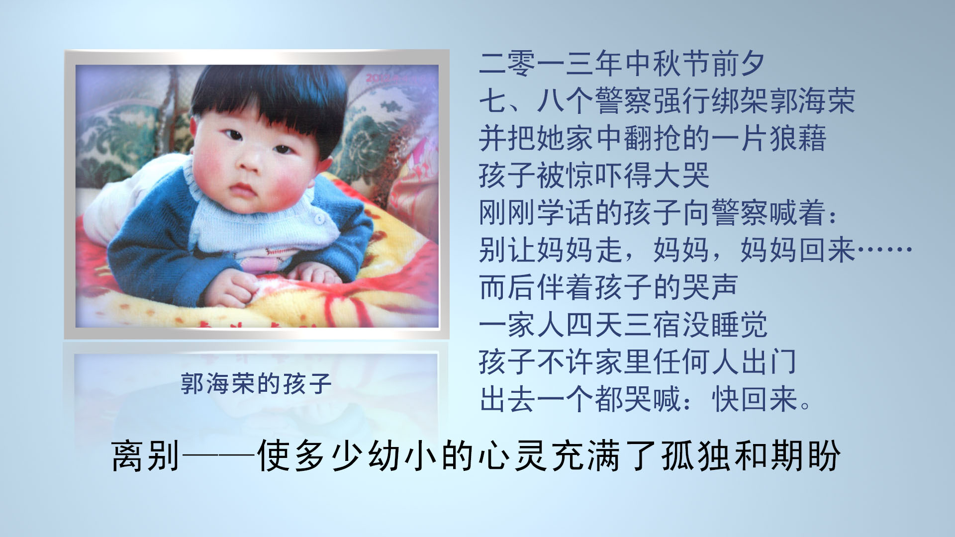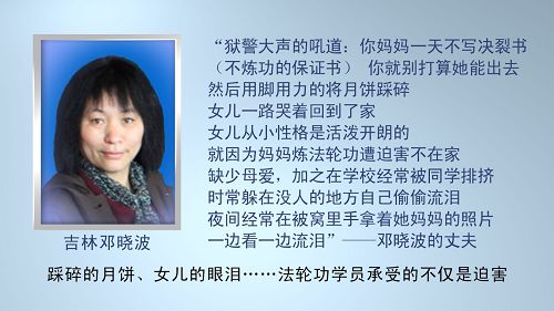 | 【明慧网二零一六年九月十二日】(明慧网通讯员综合报道)“……秋天到了,多想一家人过个团圆的中秋节呀!可我只能偷偷跑到学校,给儿子送了几斤月饼。在楼梯口,儿子见到我笑了,那种笑是开心的笑,幸福的笑,因得到了仅有的一点父爱。相见是短暂的,望着儿子转身离去的背影,我的心已是五味俱全……”这是内蒙古法轮功学员马清海讲述他在流离失所中,一个“悲”中带“欢”的中秋节。为躲避迫害,他在近三年的时间搬了十六次家。 上图杨宏、蒋雅辉这一对年轻有为的夫妇,只因为坚持自己的信仰做个好人,屡遭迫害。二零一五年中秋节,这对同陷囹圄却不得相见的夫妻,被允许在几米远处铁栅栏外,四目相望,不许说一句话。再次的相见应该是半年后两人被非法庭审的时候,那一刻揪着在场众多亲人的心。 中秋节对中国人来讲是个团圆的节日。一般的中国人即使经济、时间难以付出,电话、短信也能给予亲人祝福。众多法轮功学员和亲人却有千里之隔,高墙之隔,甚至生死之隔。发生在中秋节这一天的迫害,让法轮功学员和亲人雪上加霜,使这些冤狱蒙上了更深的阴影,增添了更多的泪水。 据不完全统计,在中秋节这一天被迫害离世的法轮功学员有10名(约为总量的1/365)。这些数字仅为法轮功学员突破中共网络封锁曝光的部份案例,实际数字远大于此。自一九九九年七二零后,每年的365天,迫害天天都在发生,中秋节的悲欢离合象一个缩影,折射出这场浩劫之深、之广、之残酷险恶。 团圆节的绑架案 一九九九年中秋节——“这天正是孩子百天,我被带走的十几个小时中,孩子有近一半的时间在哭,饿了哭,哭累了再睡。孩子的姑姑用尽了办法也无济于事,只能不停地抱着孩子走来走去。”这是保定教师齐淑英在控告迫害元凶江泽民的起诉书中描述的,她在哺乳期被绑架后的一幕,非法审讯时,警察看到她胀奶后浸湿的衣服,竟露出丝丝坏笑,没有丝毫同情感。 二零零一年中秋节——“王跃奎(山东招远政府人员)带领十几个人去抓傅彩霞,把门都砸碎了,傅彩霞趁机逃了出去,在外面流离失所达六个多月。” 二零零三年中秋节——辽宁朝阳市的李英轩为躲避突如其来的绑架,不慎摔的七窍流血,警察后来一走了之,家人为她花了近两万元医治。 二零零四年中秋节——甘肃白银市的白三元被胳膊反拧到背后,用手铐铐住双手绑架到了派出所,在车上一恶人故意用身体压在铐子上,使铐子深深的嵌进了白三元手腕肉内,当天双手、手腕就肿了。 …… 二零零七年中秋节—— “当时我的爱人正怀有八个月的身孕,警察的暴行使她受到很大惊吓,后来早产。孩子因为早产和在怀孕时受了惊吓,现在胆子很小,内向,怕见陌生人。”湖北仙桃市优秀教师付令军回忆当天发生的绑架。 …… 据不完全统计,在明慧网上曝光的绑架案例,发生在中秋节这一天的每年都有,历年中秋节这一天被绑架的法轮功学员总数至少490人次,实际数目远远大于此。 月光下的暴行 近百名律师为法轮功学员的近千场辩护,已经让外界熟知了一个常识,“对法轮功学员的镇压没有任何法律依据,一切参与抓捕、拘押、审判法轮功学员的组织和个人都是在犯罪。”因此无理的迫害才充满了隐藏和掩盖,“黑夜里发生”、“关起门来的暴行”比比皆是。然而“三尺头上有神灵”,月亮也见证了这一切。 二零零二年中秋节——“恶徒将母亲双手抱铐在大树上,整整铐了一宿,致使她双手僵直拿不住东西,之后还被迫干活。”这是被迫害致死法轮功学员任金慧的儿子诉江材料中,披露的母亲生前所遭受的一种酷刑,他母亲还经历过铐死人床(如下图)、坐小凳、烈日下罚站、被毒打致昏、电棍电击……任金慧被迫害离世时已年近七旬。 同是二零零二年中秋节——法轮功学员陈伟君被关在小号,遭拳打脚踢,恶警反复打。这是她第二十次被酷刑折磨,她曾遭三十七次酷刑折磨。二零零七年六月三日,陈伟君含冤离世,年仅四十九岁。当晚电闪雷鸣,大雨瓢泼,老天为她哭泣。 二零一四年中秋节——法轮功学员王建辉在黑龙江女子监狱里双手被扭到后背紧紧的捆着,嘴用宽胶带缠住在小凳上坐了一夜不让睡觉。在这之前没多久,王建辉关在小号,铐在地环上十五天从来没有打开过,吃饭、睡觉、上厕所都锁在地环上,不许洗脸、洗脚、刷牙等。 …… 现在总结出来的中共对法轮功学员的酷刑达百余种,而每一种酷刑又演变出不同种类,到底有多少种?有多残酷?这是最让法轮功学员的亲人担心的,往往无助的期盼化成一个可怜的愿望──“只要还活着就行”。 亲人泪 “家里只剩下我一个人了。我一直就胆小,孤独和恐惧不断的向我袭来……多少个节日都没有父母的陪伴,中秋节自己一个人拿着月饼,仰望星空,看着月亮,想念着身在异乡的爸爸和身陷囹圄的妈妈……”被迫害法轮功学员的孩子除了孤独还有冤屈:“很多个夜晚我都在想,我们做错了什么。不就说了实话吗?坚持真正的信仰吗?公民没有信仰自由的权利吗?法轮功这么好为什么要遭受迫害呢?” 二零零九年中秋之夜——妈妈抱着五岁的园园哭泣。园园的爸爸,陕西宝鸡法轮功学员胡红科被绑架半年还没有回家。园园的爷爷奶奶因爸爸的事一病不起。园园外婆家要妈妈和爸爸离婚。园园说:“妈妈四处打听找爸爸。爸爸曾被关在岐山监狱。我见不到爸爸。” 上文中