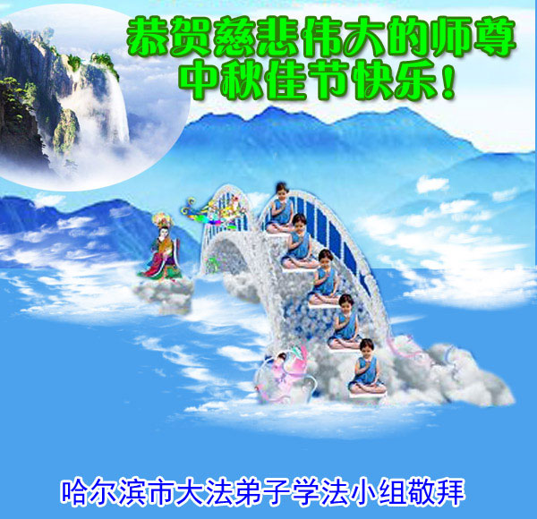 黑龙江哈尔滨大法弟子叩拜 黑龙江哈尔滨市学法小组大法弟子恭祝慈悲伟大的师尊中秋佳节快乐!