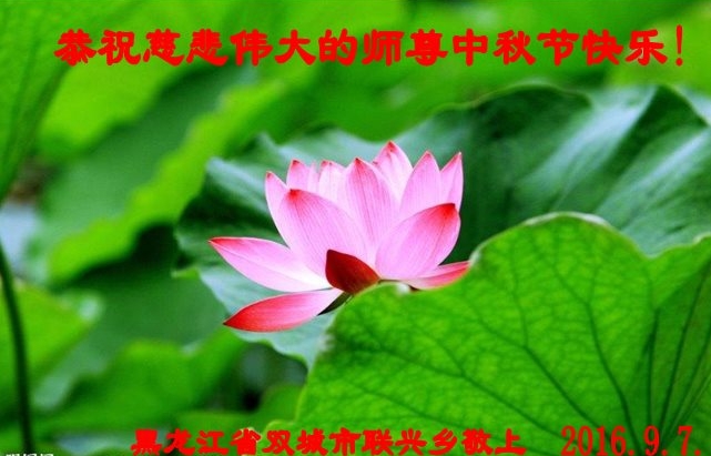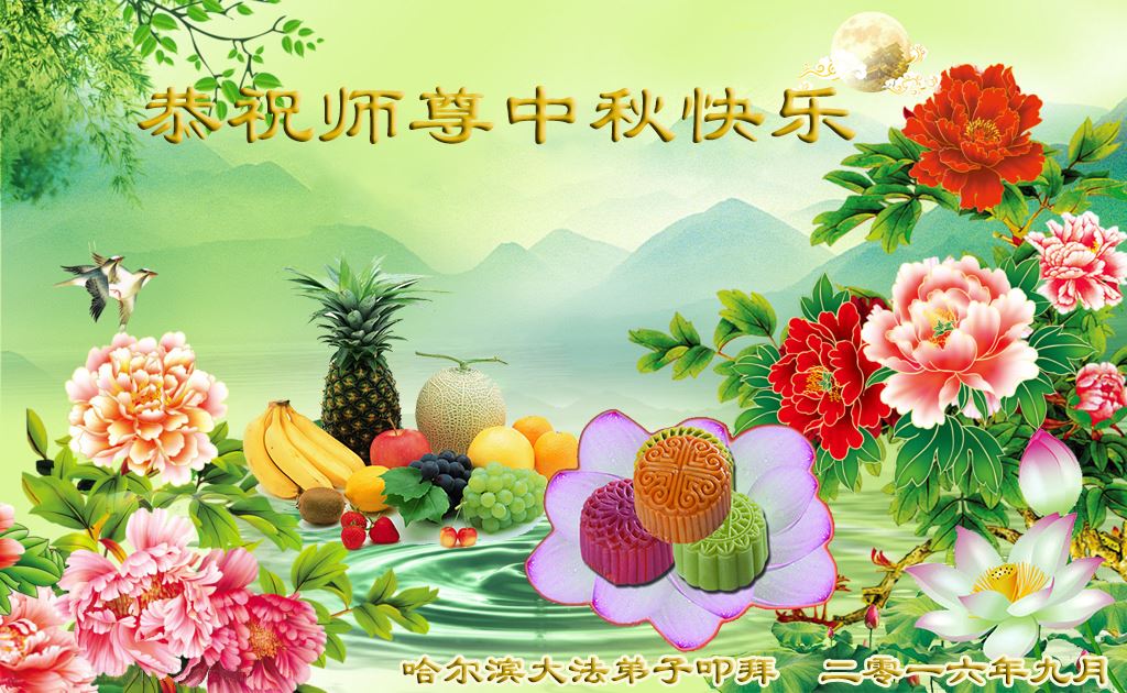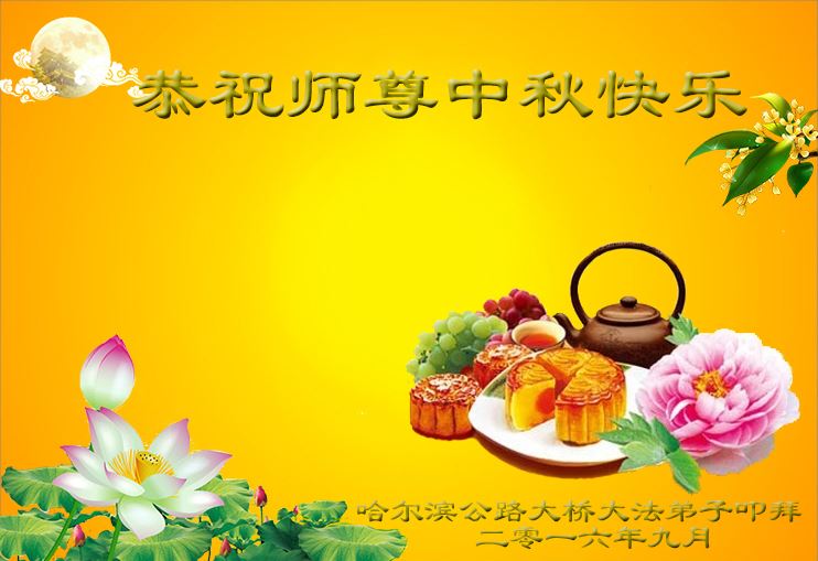 【明慧网二零一六年九月十三日】 黑龙江省哈尔滨大法弟子恭祝慈悲伟大的师尊中秋快乐!
