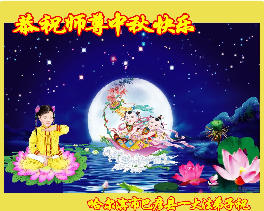 黑龙江哈尔滨巴彦县大法弟子敬上 黑龙江省哈尔滨大法弟子学法小组恭祝慈悲伟大师尊中秋节快乐!