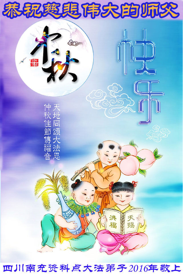 弟子一定做好三件事,请师尊放心。 助师正法 勇猛精進! 跪拜师尊 合十 2016年9月1日 四川省巴中市一学法组的大法弟子恭祝慈悲伟大师尊中秋快乐!