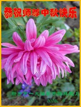 我一定谨遵师尊教诲,多学法,学好法,遇事向内找,再难也不难,处处展现大法弟子应有的风采,精進实修多救人,助师正法了洪愿。 新乡市一法轮大法弟子叩拜 二零一六年九月五日 河南新乡市一法轮大法弟子恭祝师尊中秋节快乐!