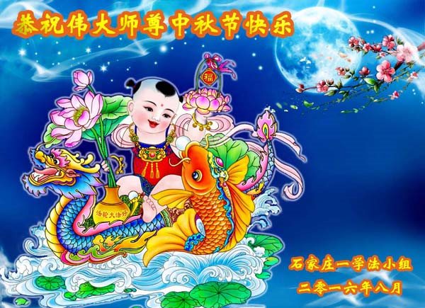 我们全家人都淋浴在大法中,谢谢师尊!中秋快乐! 河北省石家庄一学法小组全体大法弟子恭祝师尊中秋节快乐!
